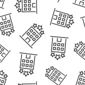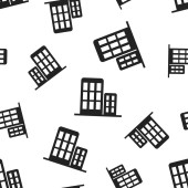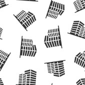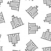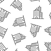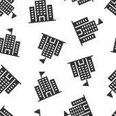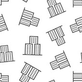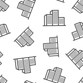 Ikona budynku w płaskim stylu. Miasto drapacz chmur mieszkanie wektor ilustracja na białym odizolowanym tle. Wieża miasta płynny wzór koncepcji biznesowej.