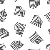 Ikona budynku w płaskim stylu. Miasto drapacz chmur mieszkanie wektor ilustracja na białym odizolowanym tle. Wieża miasta płynny wzór koncepcji biznesowej.