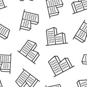 Ikona budynku w płaskim stylu. Miasto drapacz chmur mieszkanie wektor ilustracja na białym odizolowanym tle. Wieża miasta płynny wzór koncepcji biznesowej.