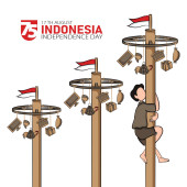 Ręcznie rysowana ilustracja koncepcji kartki okolicznościowej Dnia Niepodległości Indonezji. Co świętujemy 17 sierpnia. (tłumaczenie: kemerdekaan indonesia)