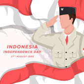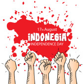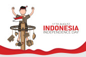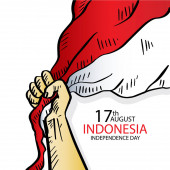 Ręcznie rysowana ilustracja koncepcji kartki okolicznościowej Dnia Niepodległości Indonezji. Co świętujemy 17 sierpnia. (tłumaczenie: kemerdekaan indonesia)