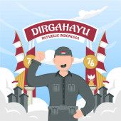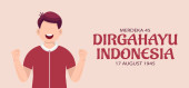 Ręcznie rysowana ilustracja koncepcji kartki okolicznościowej Dnia Niepodległości Indonezji. Co świętujemy 17 sierpnia. (tłumaczenie: kemerdekaan indonesia)