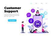 Wsparcie lub call center 24 / 7 koncepcja. Szablony stron internetowych lub banerów. 24 godziny otwarta obsługa klienta. Ilustracja wektora Isometryczna.