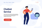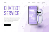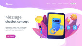 Koncepcja Chatbota. Człowiek rozmawiający z robotem. Obsługa klienta android, sztuczna inteligencja dialog .