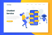 Zdjęcie "Koncepcja Chatbota. Człowiek rozmawiający z robotem. Obsługa klienta android, sztuczna inteligencja dialog . " może być wykorzystywane do celów osobistych i komercyjnych zgodnie z warunkami zakupionej licencji Royalty-free. Obraz jest dostępny do pobrania w jakości wysokiej rozdzielczości do 5760x3840.