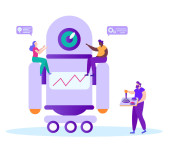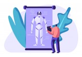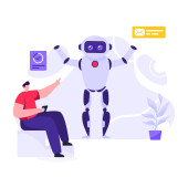 Chat bot, sztuczna inteligencja izometryczna. Biznes AI i IOT koncepcja. Ilustracja wektora.