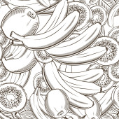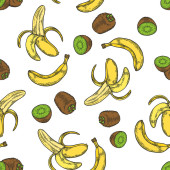 Kolorowy bezszwowy wzór z bananami i kiwi w stylu vintage