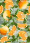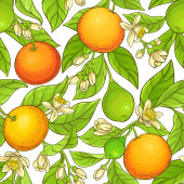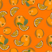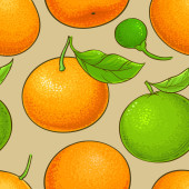 Kolorowy bezszwowy wzór z zielonymi jabłkami i pomarańczami w stylu vintage