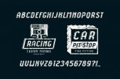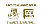 Projektowanie logo klubu motocyklowego.Dekoracyjna czcionka. Litery, liczby i symbole. Ilustracja wektora