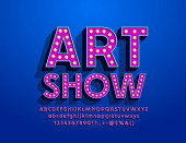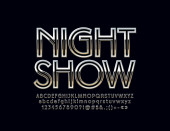Vector nowoczesnej ulotki Art Show. Zielony i czarny kreatywny Czcionka. Ciemnogradientowe metaliczne litery i liczby alfabetu