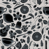 Zdjęcie "Płynny wzór z ręcznie rysowane kreda cynamon, cytryny, pomarańcze, torebka herbaty, kostki cukru, wrzos, rumianek, pies róża, mięta pieprzowa, migdały, truskawki, łyżeczka, czajniki, filiżanki, miska cukru" może być wykorzystywane do celów osobistych i komercyjnych zgodnie z warunkami zakupionej licencji Royalty-free. Obraz jest dostępny do pobrania w jakości wysokiej rozdzielczości do 5760x3840.