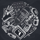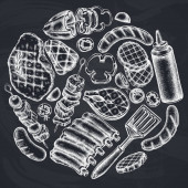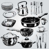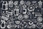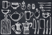 Okrągły design z kredą Noże szefa kuchni, łyżeczka, łyżeczka, widelec, nóż, deska do krojenia, butelka oleju, czajniki, dzbanek do kawy, kubki, miska cukru, Pieprz shaker, solniczka