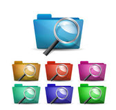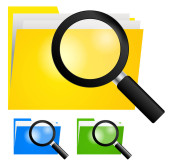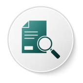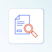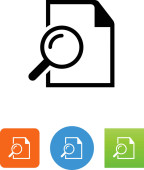 Czarny dokument z ikoną wyszukiwania na białym tle. Plik i ikona szkła powiększającego. Znak badań analitycznych. Zestaw ikon w kolorach kwadratowych przycisków. Ilustracja wektora.