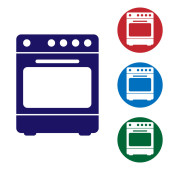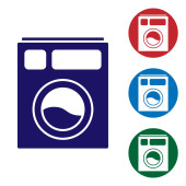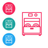 Błękitna kuchnia zmywarka ikona maszyny izolowane na białym tle. Zestaw ikon w kolorach kwadratowych przycisków. Ilustracja wektora.