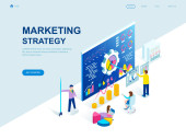 Izometryczna strona lądowania lejka marketingowego. Badania marketingowe i planowanie strategii, przyciąganie nowych klientów izometria strony internetowej. Strona internetowa płaski szablon, wektor ilustracji z postaciami ludzi.