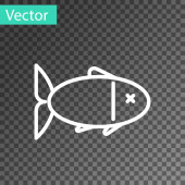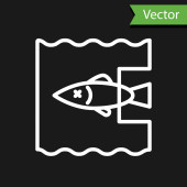 Biała linia Ikona ryb izolowana na czarnym tle. Wektor..
