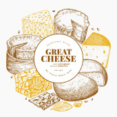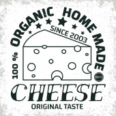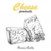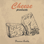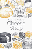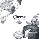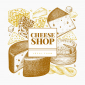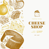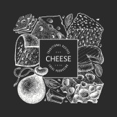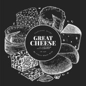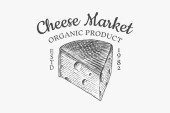 Szablon logo sklepu serowego. Ręcznie rysowane wektor ciężarówka z ilustracją sera na tablicy kredy. Grawerowany styl retro jedzenie projekt.