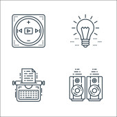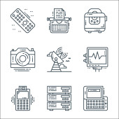 Zdjęcie "ikony linii urządzeń technologicznych. zestaw liniowy. wysokiej jakości zestaw linii wektorowych, takich jak telefon, czat komórkowy, bateria, modem, toster, serwer, przedłużacz" może być wykorzystywane do celów osobistych i komercyjnych zgodnie z warunkami zakupionej licencji Royalty-free. Obraz jest dostępny do pobrania w jakości wysokiej rozdzielczości do 5760x3840.