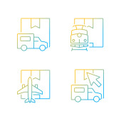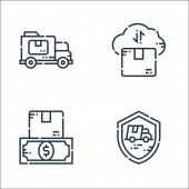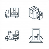 Ikony linii dostawy. zestaw liniowy. zestaw linii wektora jakości, takich jak dostawa dronów, zakupy online, dostawa samochodów ciężarowych