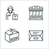 Ikony linii dostawy. zestaw liniowy. zestaw linii wektorowych jakości, takich jak pakiet, koperta, supermarket, motocykl, kontener, zakupy online, otwarta skrzynka, dystrybucja globalna