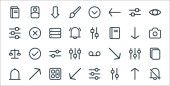 ikony linii niezbędne dla sieci web. zestaw liniowy. wysokiej jakości zestaw linii wektorowych, takich jak kamera, głośnik, wykres kołowy, globalny, długopis, ustawienia, ekran komputera, czas, chmura obliczeniowa