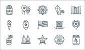 Ikony sławy. zestaw liniowy. wysokiej jakości wektor linii zestaw, takich jak pieniądze, flaga, dywan, lustro, pomnik, obraz, wieniec, muszka, samoloty