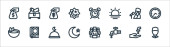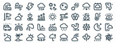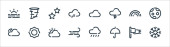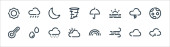 ikony linii pogodowych. zestaw liniowy. wysokiej jakości wektor linii zestaw, takich jak pół księżyca, deszczowy, strom, zachmurzenie, śnieg, wiatr, wschód słońca, płatek śniegu