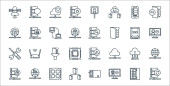 Zdjęcie "ikony linii urządzeń technologicznych. zestaw liniowy. wysokiej jakości zestaw linii wektorowych, takich jak tablet graficzny, mikrofon, budzik, kamera, gamepad, kabel danych, smartfon, głośnomówiący, klimatyzator" może być wykorzystywane do celów osobistych i komercyjnych zgodnie z warunkami zakupionej licencji Royalty-free. Obraz jest dostępny do pobrania w jakości wysokiej rozdzielczości do 5760x3840.