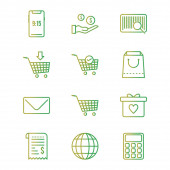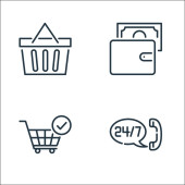 ikony linii zakupów online. zestaw liniowy. zestaw linii wektorowych jakości, takich jak licznik gotówki, koszyk dostawy, kupon