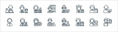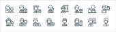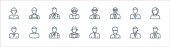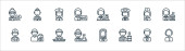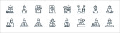 ikony linii kluczowych pracowników. zestaw liniowy. wysokiej jakości zestaw linii wektorowych, takich jak położna, lekarz, strażak, policjant, ksiądz, listonosz, sanitariusz,