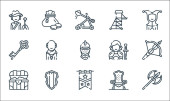 ikony linii odtwarzania awatarów. zestaw liniowy. wysokiej jakości zestaw linii wektorowych, takich jak poszukiwacz przygód, rycerz, kusza, czarodziej, smok, samuraj, artyleria, mnich