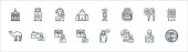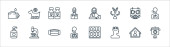 ikony linii przesyłu wirusa. zestaw liniowy. wysokiej jakości zestaw linii wektorowych, takich jak dom, raport medyczny, maska do twarzy, maska do twarzy, probówki, strzykawka, laboratorium, warzywa