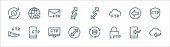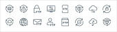 ikony linii przesyłu danych. zestaw liniowy. zestaw linii wektorowych jakości, takich jak ftp, transfer, błąd, ftp, ekran, ftp, transfer, bezpieczne
