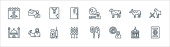 ikony linii eid al adha. zestaw liniowy. wysokiej jakości zestaw linii wektorowych, takich jak koza, szczepionka, modlitwa, hotel, kobieta, gotowanie, meczet, paszport