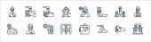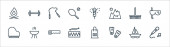 ikony linii aktywności. zestaw liniowy. wysokiej jakości zestaw linii wektorowych, takich jak ogień, baseball, liny zabawki, spania, gra w szachy, wyścigi flagi, góry, piłka nożna