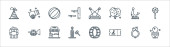 Meksykańskie ikony linii. zestaw liniowy. wysokiej jakości zestaw linii wektorowych, takich jak krzyż, cygaro, balero, marakasy, gitara, awokado, zampona, tequila