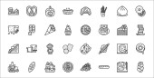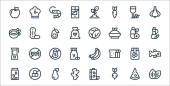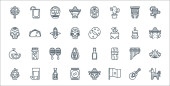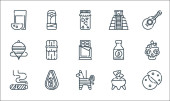 Meksykańskie ikony linii. zestaw liniowy. wysokiej jakości zestaw linii wektorowych, takich jak meksykański człowiek, pulque, tamales, meksykański kapelusz, chili, piwo, maracuya, sos chili, świeca