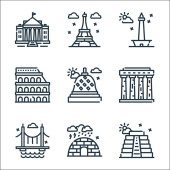 ikony linii pomników świata. zestaw liniowy. wysokiej jakości zestaw linii wektorowych, takich jak zakazane miasto, stonehenge, Ateny, brama torii, katedra, biały dom, przedszkole, Mekka, fernsehturm berlin