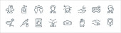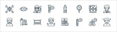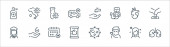 ikony linii koronawirusów. zestaw liniowy. wysokiej jakości zestaw linii wektorowych, takich jak budynek, ziemia, odległość, nos, płytka Petriego, suszarka do rąk, oko, cheking