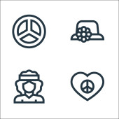 Ikony hipisów. zestaw liniowy. wysokiej jakości zestaw linii wektorowych, takich jak torebka, dywan, lampa lawy, drzewo, ying yang, naszyjnik, walizka, hippy