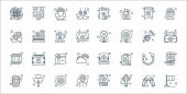 ikony linii czyszczącej. zestaw liniowy. wysokiej jakości zestaw linii wektorowych, takich jak WC, szczotka, kran, miotła, mokra podłoga, suszarka do rąk, odkurzacz, gąbka, sanitarne