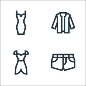 ikony linii garderoby. zestaw liniowy. wysokiej jakości zestaw linii wektorowych, takich jak szelki, strój kąpielowy, mundur, bluza z kapturem, długie rękawy, spodnie, strój kąpielowy, długa sukienka