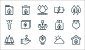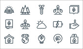 ikony linii ekologicznej. zestaw liniowy. wysokiej jakości zestaw linii wektorowych, takich jak kiełk, liść roślin, bańka mowy, mętny, olej organiczny, miłość, kosz na śmieci, energia, recykling