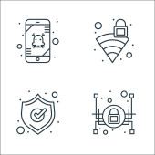 ikony linii sprzętu komputerowego. zestaw liniowy. wysokiej jakości zestaw linii wektorowych, takich jak smartfon, mysz, odblokowany, chronić, zablokować, mysz, zablokowany