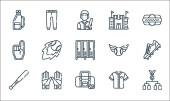ikony linii mody. zestaw liniowy. wysokiej jakości zestaw linii wektorowych, takich jak lakier do paznokci, płaszcz przeciwdeszczowy, sweter, parasol, zegarek na rękę, bluzka, kurtka, but, t-shirt