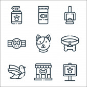 Zdjęcie "ikony linii zwierząt domowych. zestaw liniowy. wysokiej jakości zestaw linii wektorowych, takich jak sklep zoologiczny, akwarium, kąpiel, piłka, znieczulenie, szczotka do zwierząt domowych, kroplomierz, dom dla kotów" może być wykorzystywane do celów osobistych i komercyjnych zgodnie z warunkami zakupionej licencji Royalty-free. Obraz jest dostępny do pobrania w jakości wysokiej rozdzielczości do 5760x3840.