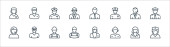 Zdjęcie "ikony zawodów. zestaw liniowy. wysokiej jakości zestaw linii wektorowych, takich jak robotnik, sportowiec, strażak, model, piekarz, kobieta biznesu, żołnierz, dziennikarz" może być wykorzystywane do celów osobistych i komercyjnych zgodnie z warunkami zakupionej licencji Royalty-free. Obraz jest dostępny do pobrania w jakości wysokiej rozdzielczości do 5760x3840.