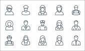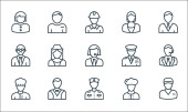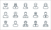 ikony zawodów. zestaw liniowy. zestaw linii wektorowych jakości, takich jak call agent, pielęgniarka, manager, biznesmen, student, nauczyciel, zakonnica, pielęgniarka, strażak