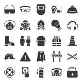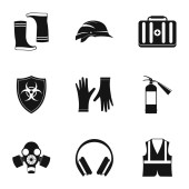 płaskie ikony ratownicze i ochronne. zestaw liniowy. wysokiej jakości zestaw linii wektorowych, takich jak kask, maska gazowa, ochrona ucha, maska medyczna, ochrona ucha, maska spawalnicza, gwizdek, boi ratunkowej, rękawiczki
