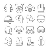 Zdjęcie "płaskie ikony ratownicze i ochronne. zestaw liniowy. wysokiej jakości zestaw linii wektorowych, takich jak kask, maska gazowa, ochrona ucha, maska medyczna, ochrona ucha, maska spawalnicza, gwizdek, boi ratunkowej, rękawiczki" może być wykorzystywane do celów osobistych i komercyjnych zgodnie z warunkami zakupionej licencji Royalty-free. Obraz jest dostępny do pobrania w jakości wysokiej rozdzielczości do 5760x3840.